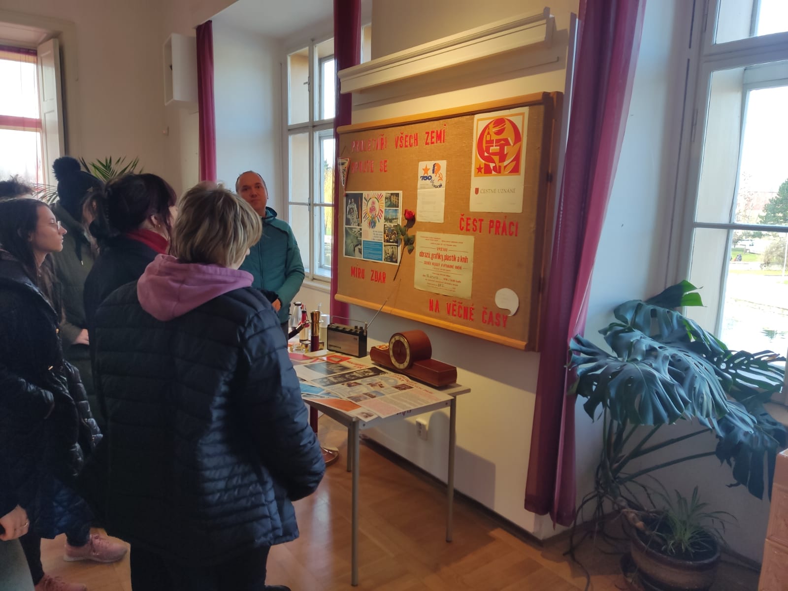 21.11. navštívily třídy O2B a CR2 choceňské muzeum. Výstava Takhle jsme tu žili nám přiblížila život v období normalizace 1968 -1989 v Chocni. Rituály, propaganda, oblíbené předměty, zvyky, fungování firem, bydlení atd. Výstavou nás zasvěceně provedl ředitel muzea Michal Hofman.