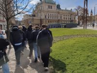 Druhý den ráno přišel ten moment, kvůli němuž jsme se do Plzně vydali, 10minutový opis. Studenti si připravili svá místa, rozepsali se a v 9:15 se šlo na věc. Opis na téma maturita byl pro mnoho účastníků velice aktuální. Po soutěžním opisu následovala chvíle volna. Dále na nás čekala prohlídka historického centra Plzně, která byla nesmírně zajímavá.