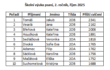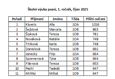 Nejlepší „psavci“ ZAVa ve škole – říjen
