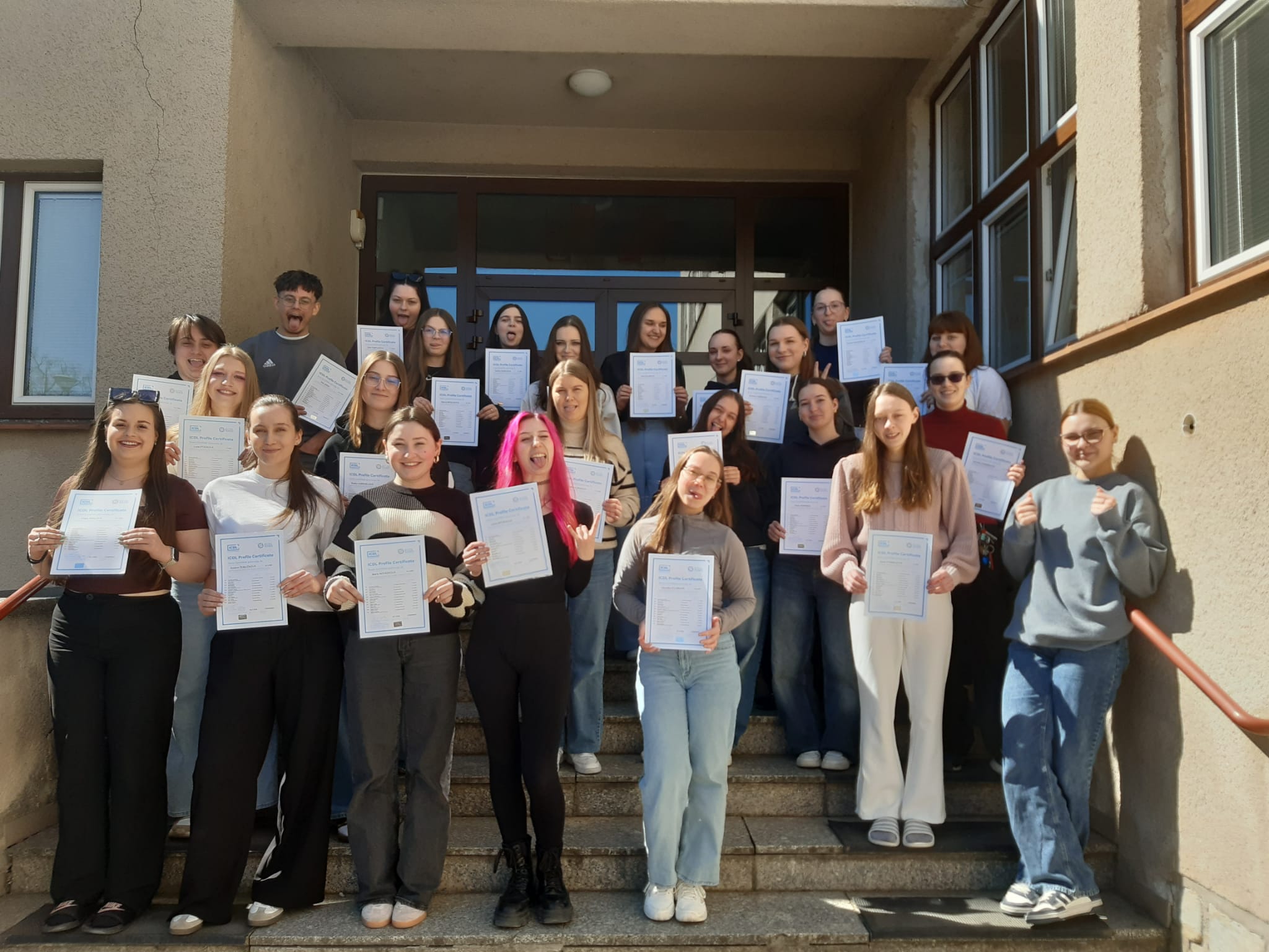 Celé třídě O4B a 10 studentům z O4A rozdala paní ředitelka certifikáty ECDL. Blahopřejeme 🙂