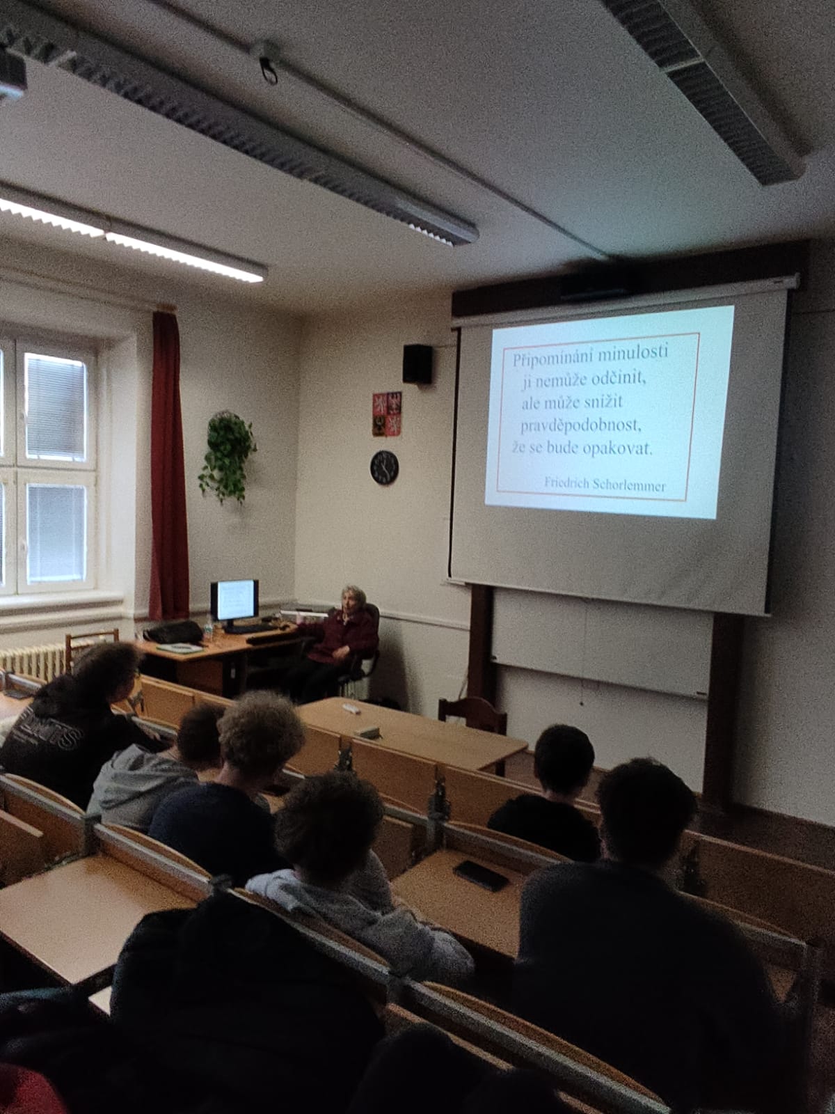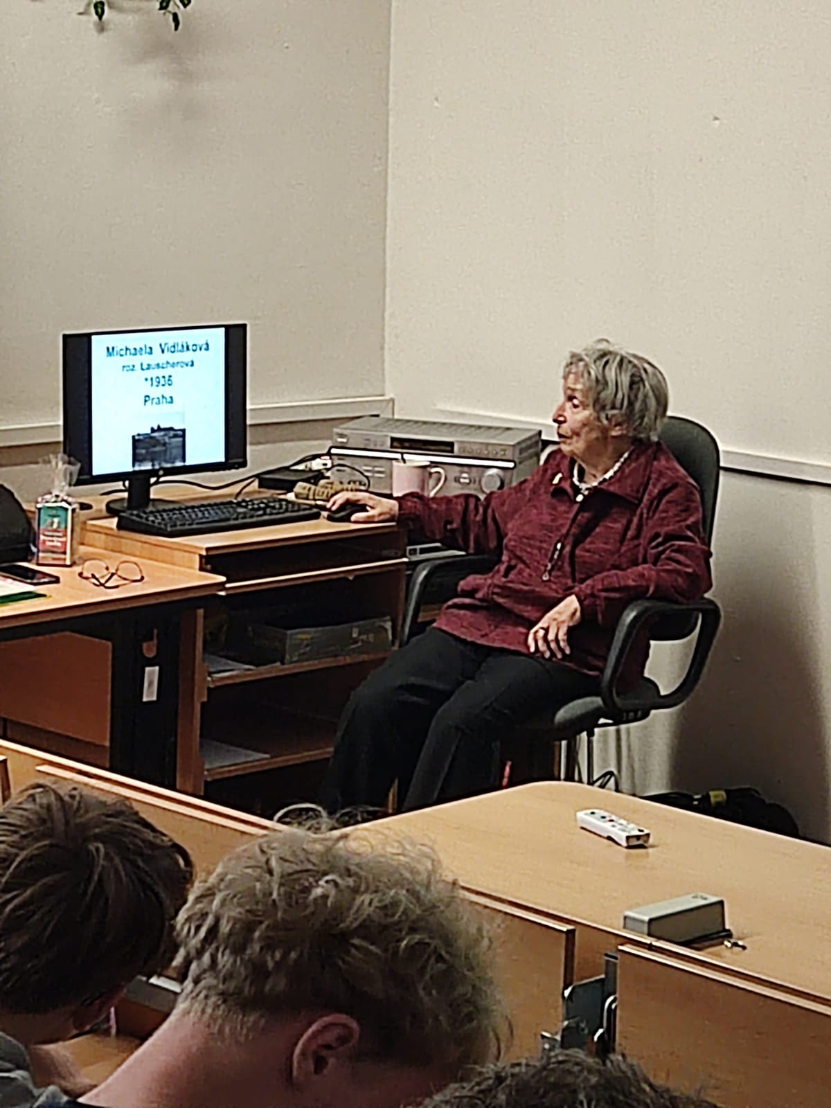 18. 2. se studenti O2A, O2B, CR2 a VS2 zúčastnili besedy s přeživší holokaustu RNDr. Michaelou Vidlákovou, která znovu připomněla svůj pohnutý životní příběh.